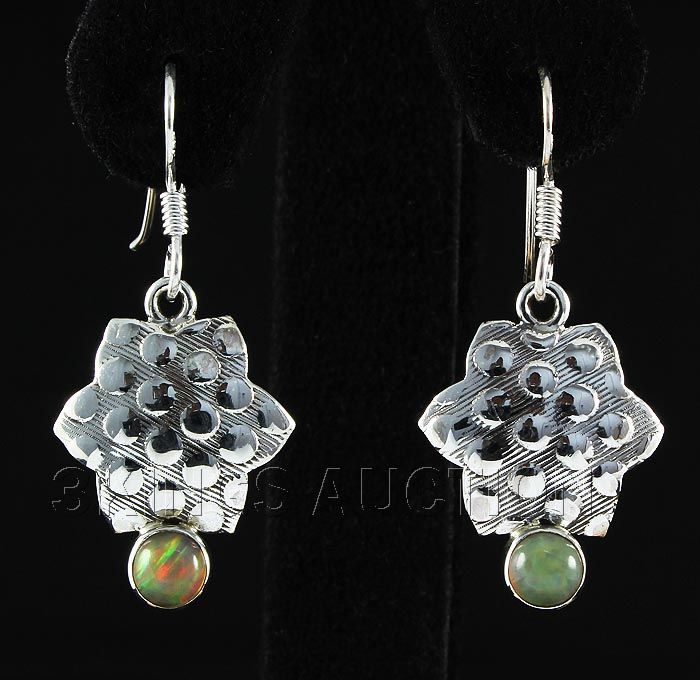 Cabochon Opal 0.54ctw Star Design 0.925 Hook Earring 3. **|**|** 1.44in. Long Genuine Opal Silver Dangling Hook Earring with a Cabochon Opal Gem Measuring 5mm Round ; MSRP: $400
