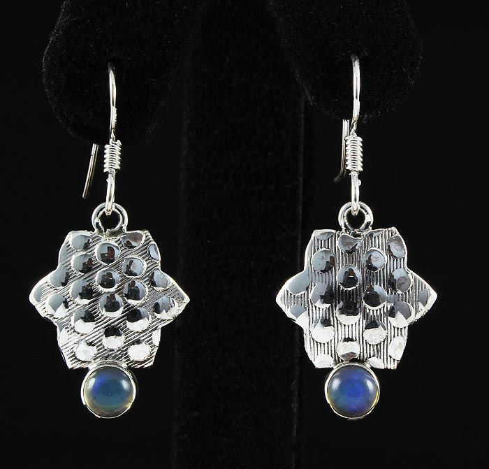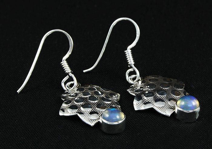 Cabochon Opal 0.54ctw Star Design 0.925 Hook Earring 3. **|**|** 1.44" Long Genuine Opal Silver Dangling Hook Earring with a Cabochon Opal Gem Measuring 5mm Round ; MSRP: $400