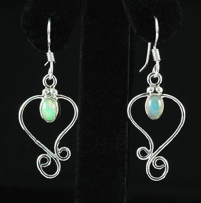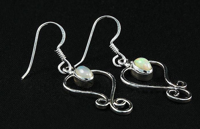 Cabochon Opal 0.60ctw Flower Design 0.925 Earring 3.0g **|**|** 1.60" Long Genuine Opal Silver Dangling Hook Earring with a Cabochon Opal Gem Measuring 6x4mm Oval ; MSRP: $300