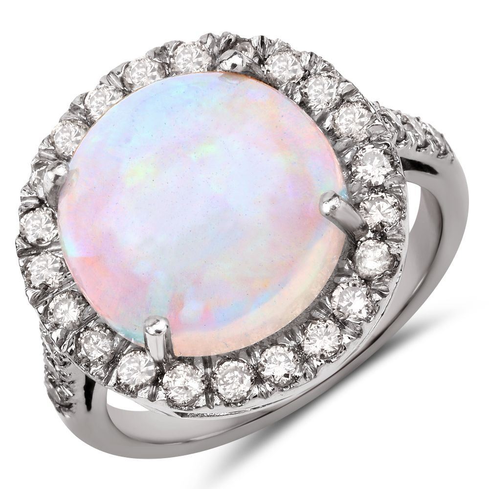 TITLE DESCRIPTION: Cabochon Opal and Champagne Diamond Halo Ring
