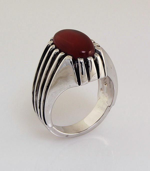Cabochon Red Agate 3.95ctw Sterling Silver Oval Ring 9. **|**|** Solid Rhodium Plated 925 Silver Ring with 14x8mm Approx Red Agate Gemstone Size 6.5 ; MSRP: $200