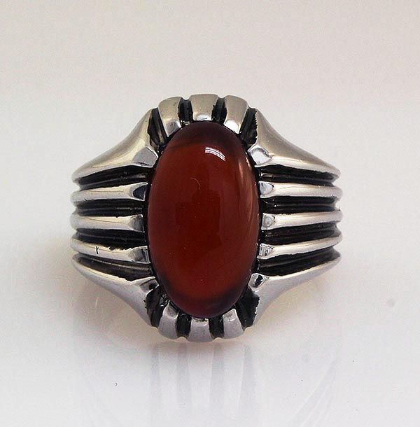 Cabochon Red Agate 3.95ctw Sterling Silver Oval Ring 9. **|**|** Solid Rhodium Plated 925 Silver Ring with 14x8mm Approx Red Agate Gemstone Size 6.5 ; MSRP: $200