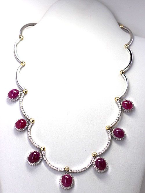14kt White/Yellow Gold 35.75 Approx grams including, 7 pcs 39.31ctw Oval Cabochon Ruby (no lead), 4.80ctw Round Diamond G-H color VS-SI clarity, Appraised Retail Value $50,000.00