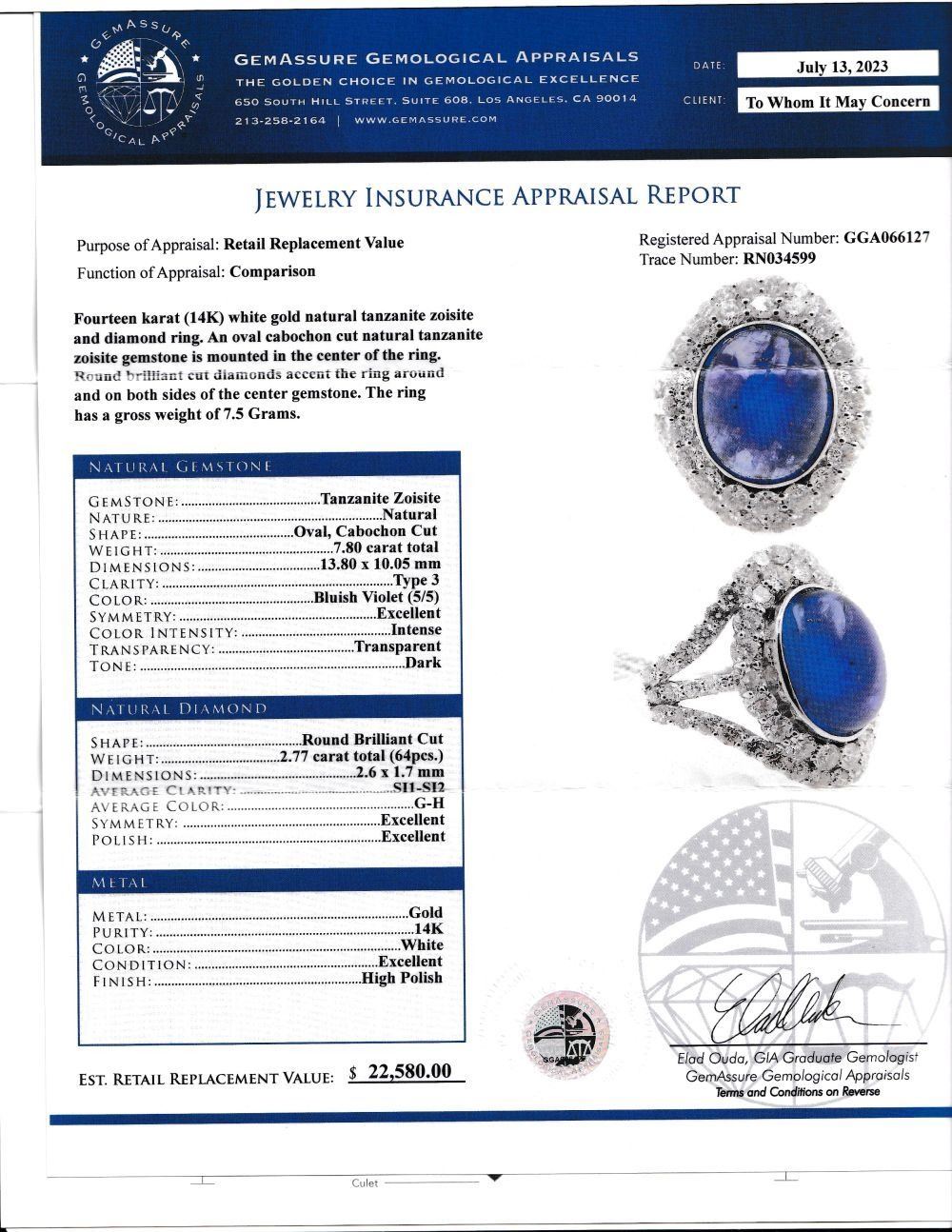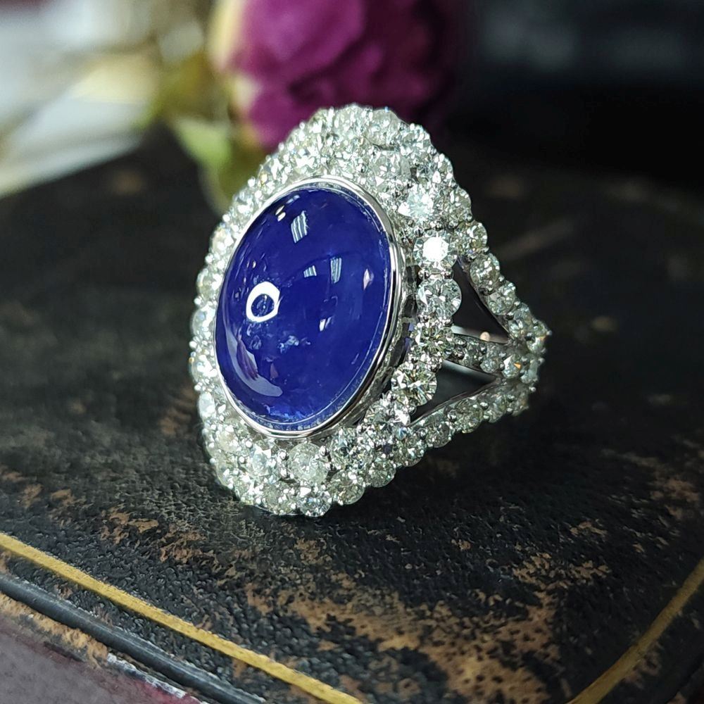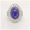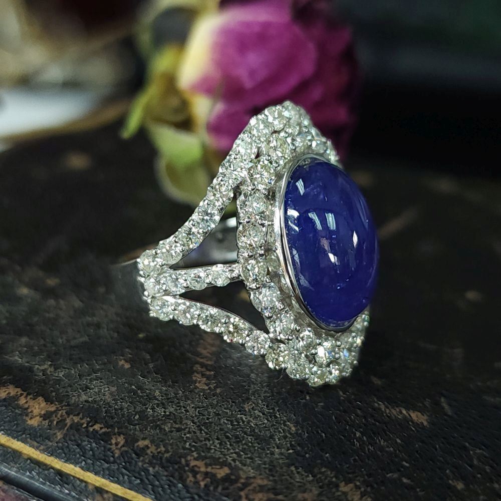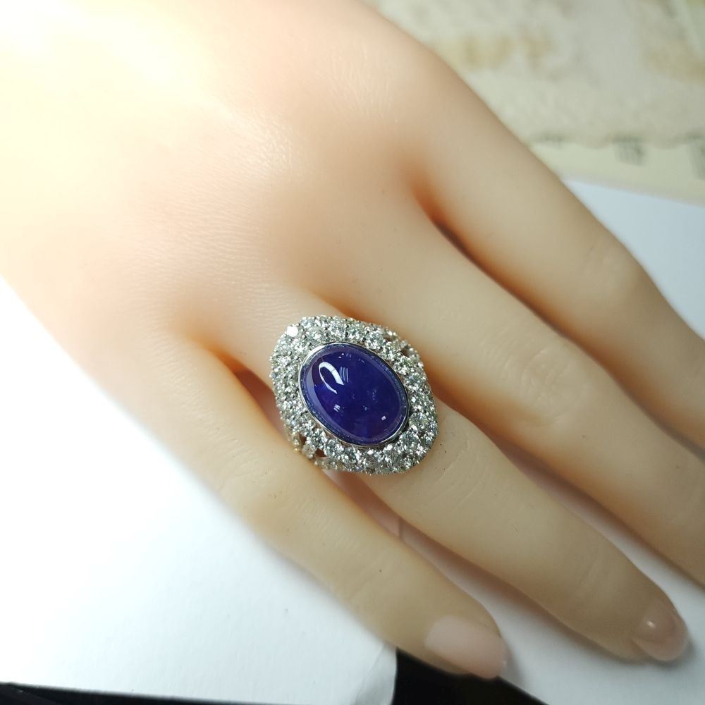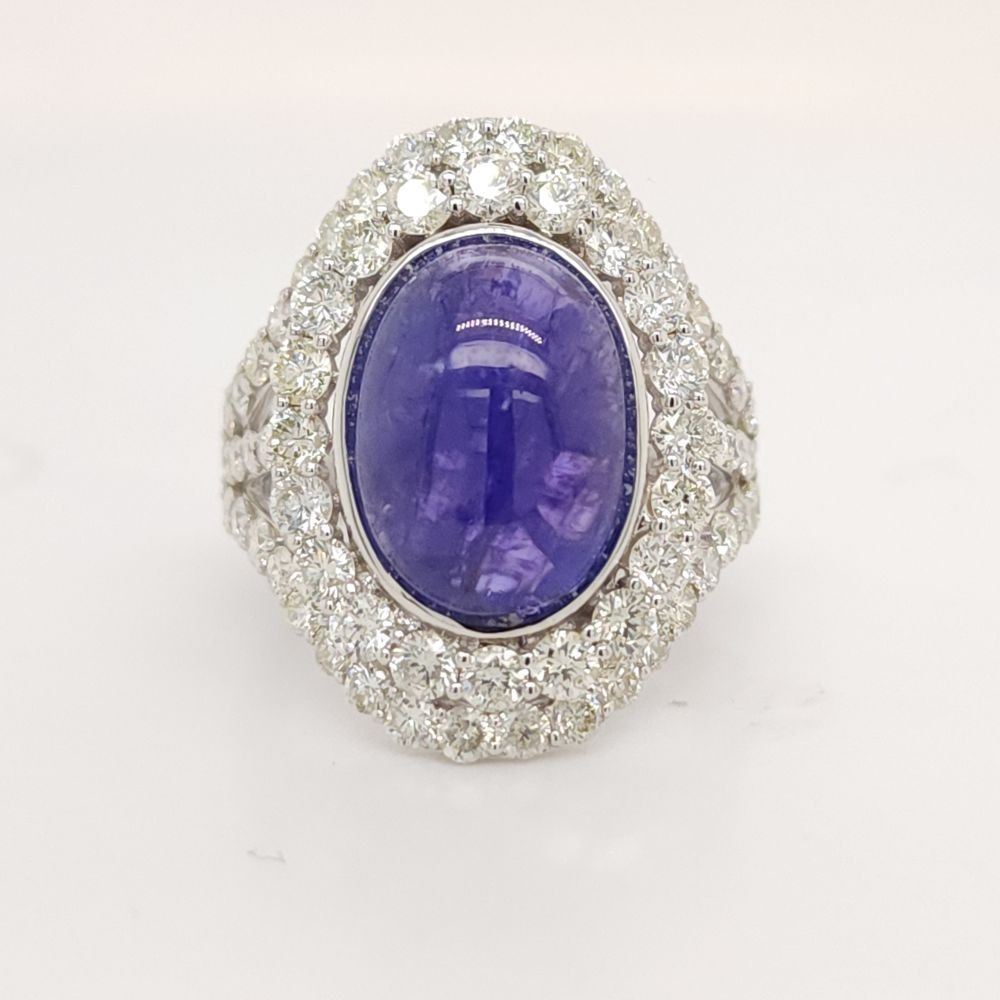 TITLE DESCRIPTION: Oscar Friedman Rare Cabochon Tanzanite and Diamond Ring