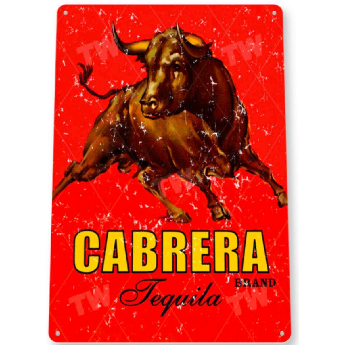 Cabrera Tequila Metal Pub Bar Sign. 8" X 11" with pre-drilled holes for mounting.Â