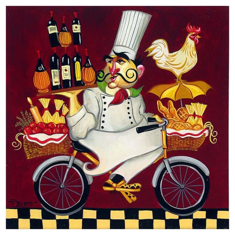 "Cacciatore Chef" is a limited edition giclee on canvas, numbered and hand signed by Tim Rogerson. This piece has at least a 2" border and can be gallery wrapped or framed based on preference. Includes Certificate of Authenticity! Measures approx. 12" x 12" (image).