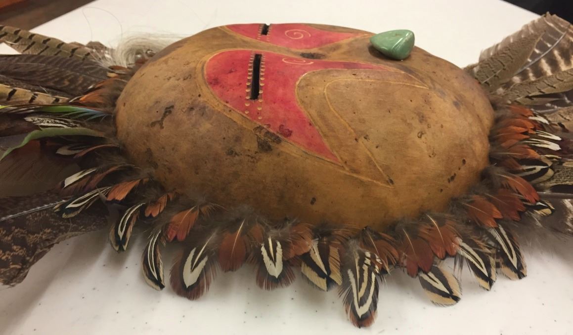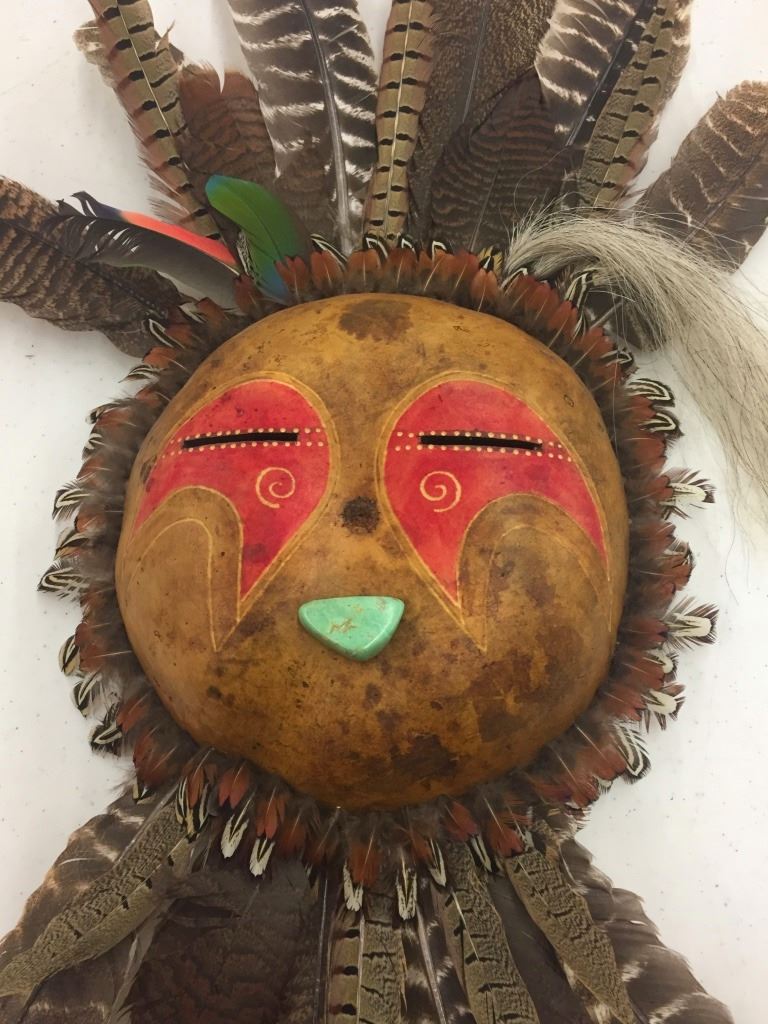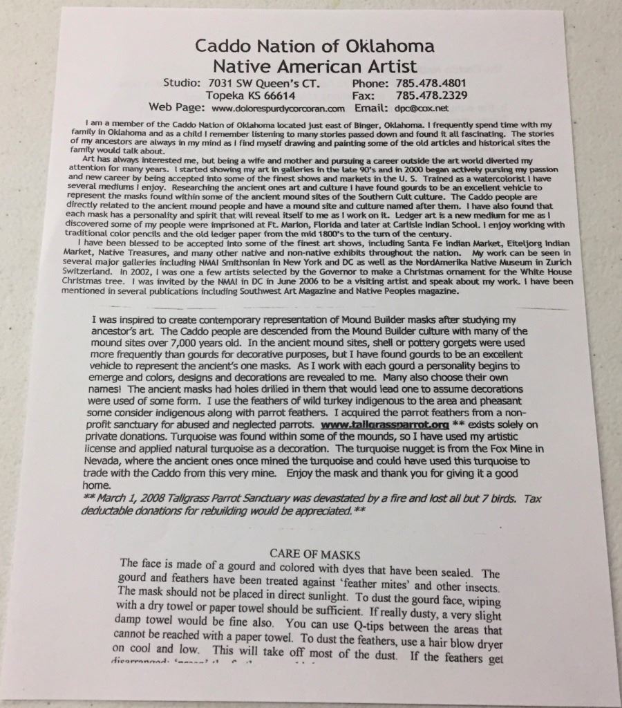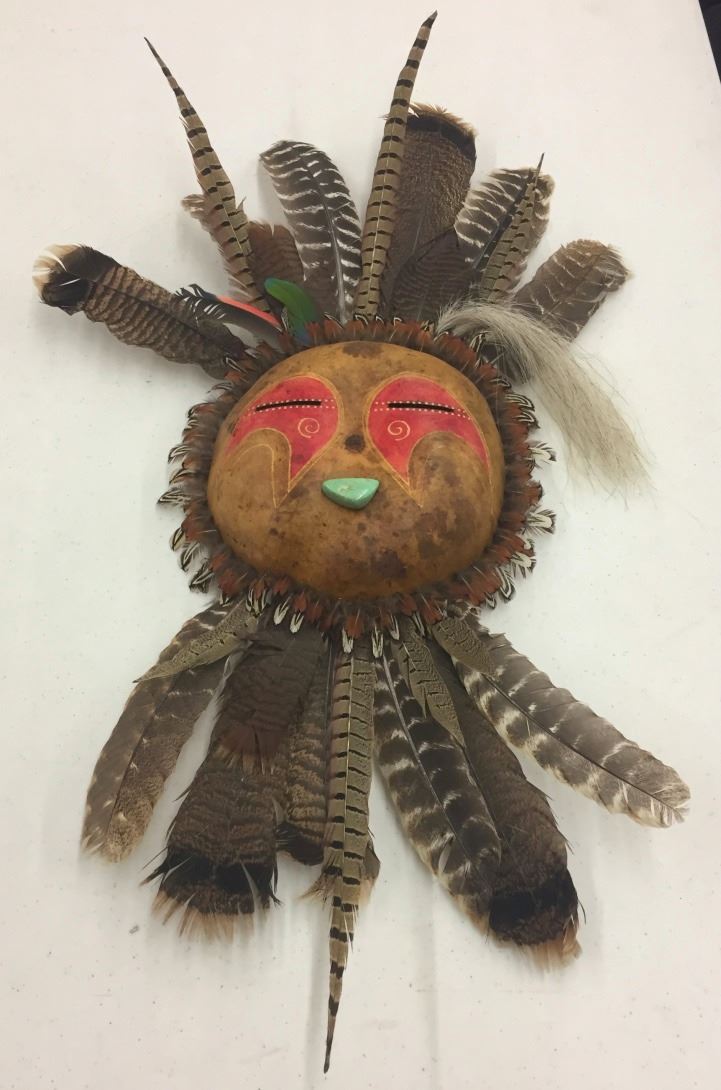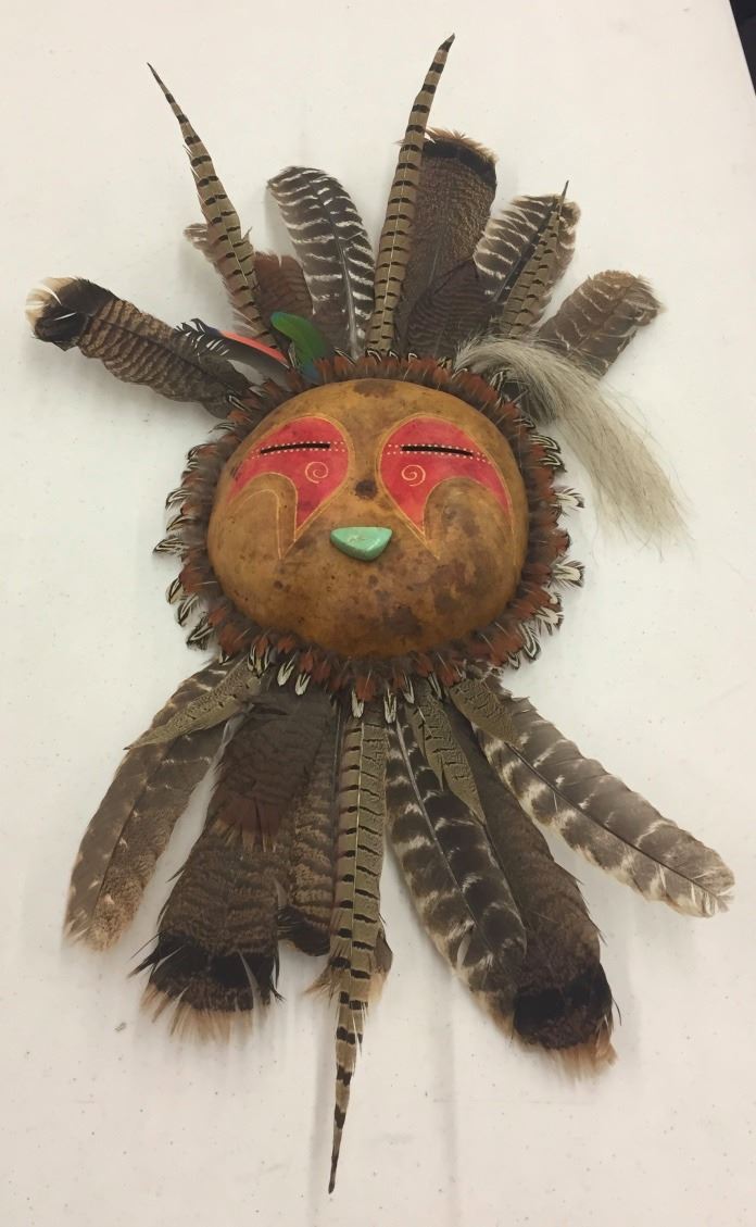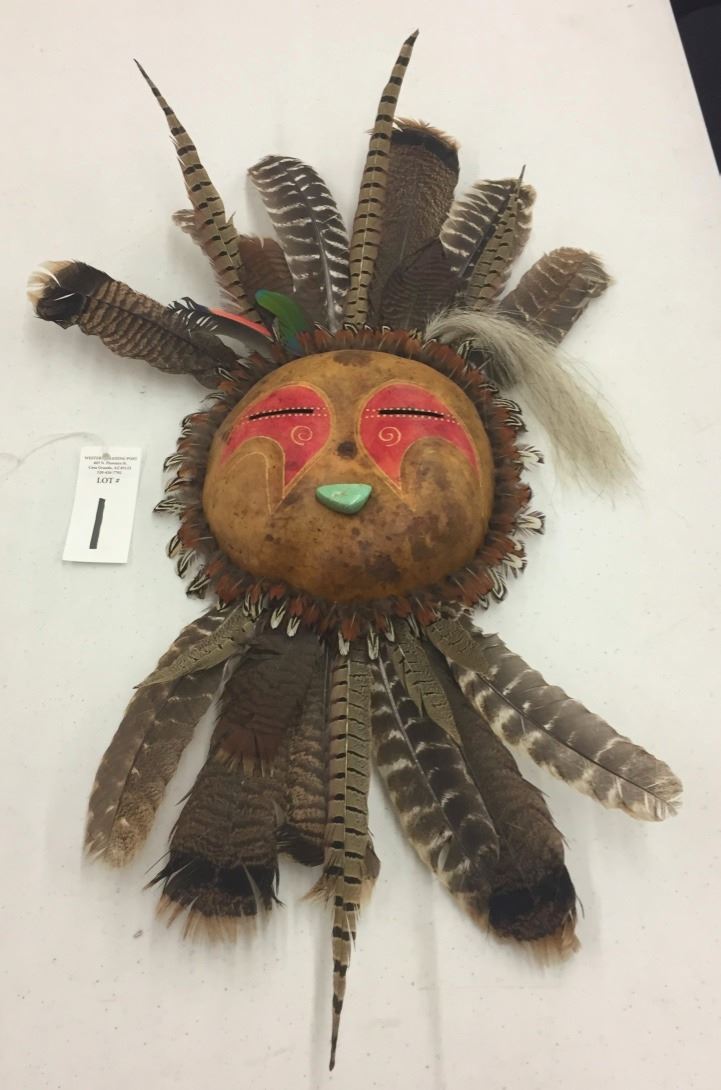 Maker: Delores Corcoran, Caddo. Approx. Age: Fairly contemporary. Size: Measures over 30” high and 20” wide with the feathers. Condition: Very good. Additional Info: Info on the artist and her inspiration comes with the piece. Please look closely at the pictures - they are an important part of our description. Shipping: There will be a $8 handling / packaging fee for shipping this lot. The actual cost of postage will be added on top of that.