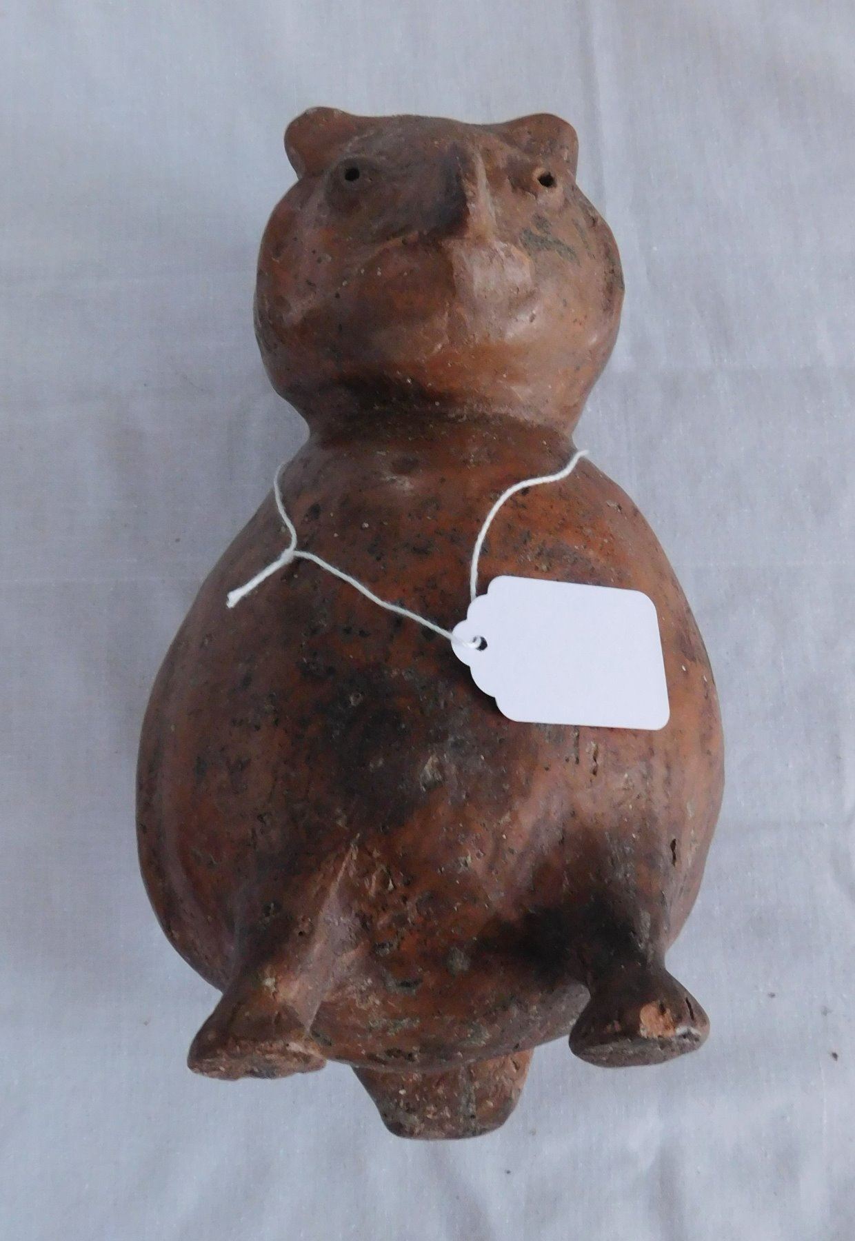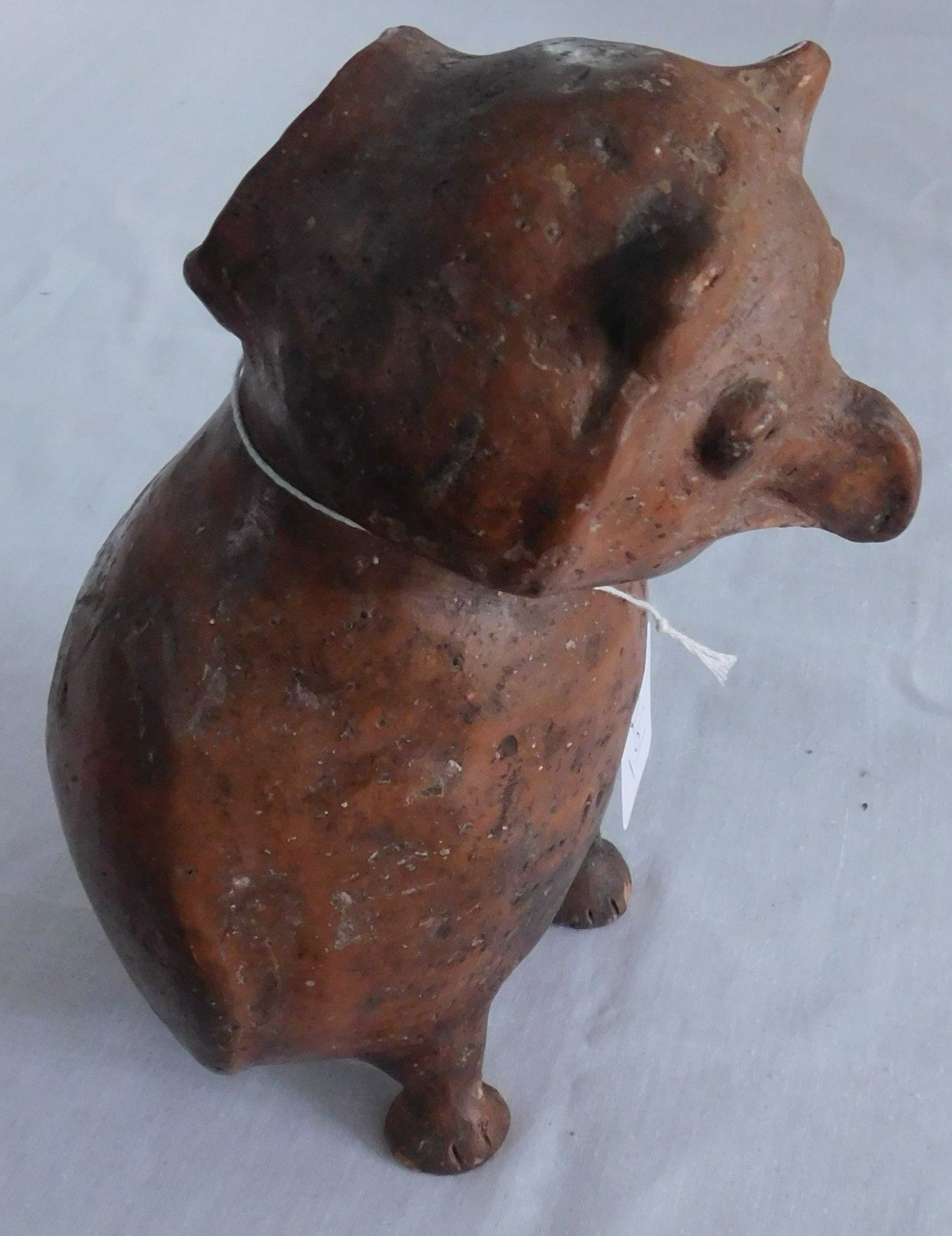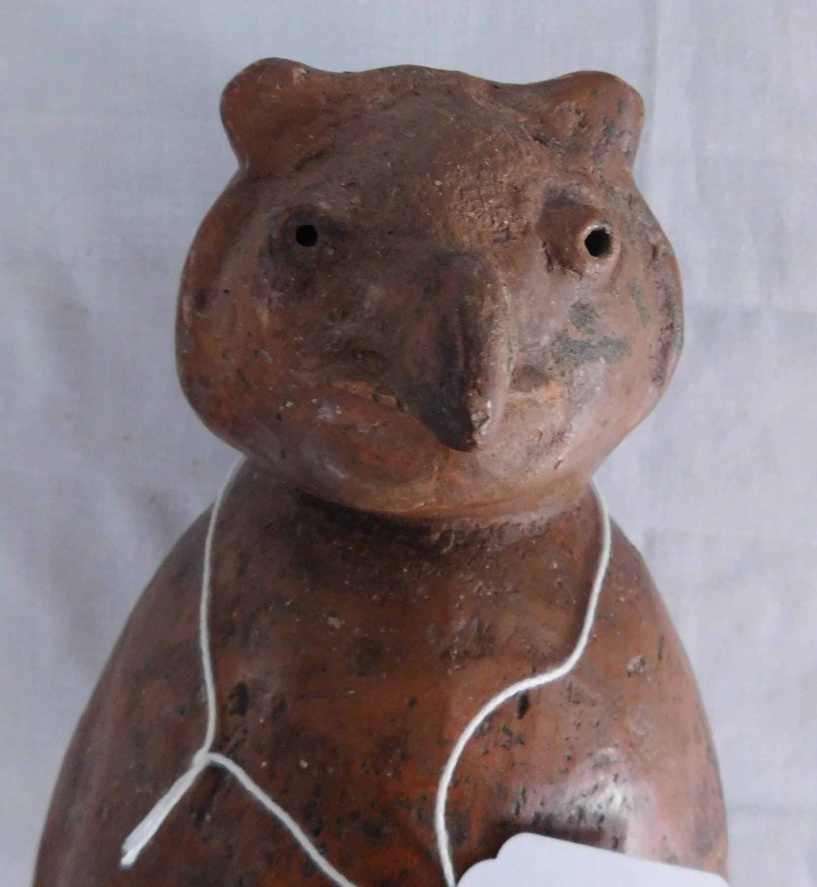 Caddo Owl, pre-historic item. Made of clay, the item measures 9" x 4.5". Eastern Texas. Condition: Good, minor chips, see images. Shipping: $34.50 w/insurance and signature, due to value.