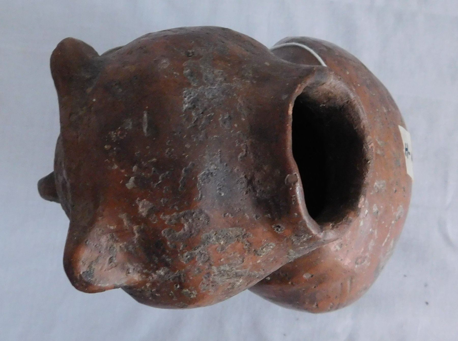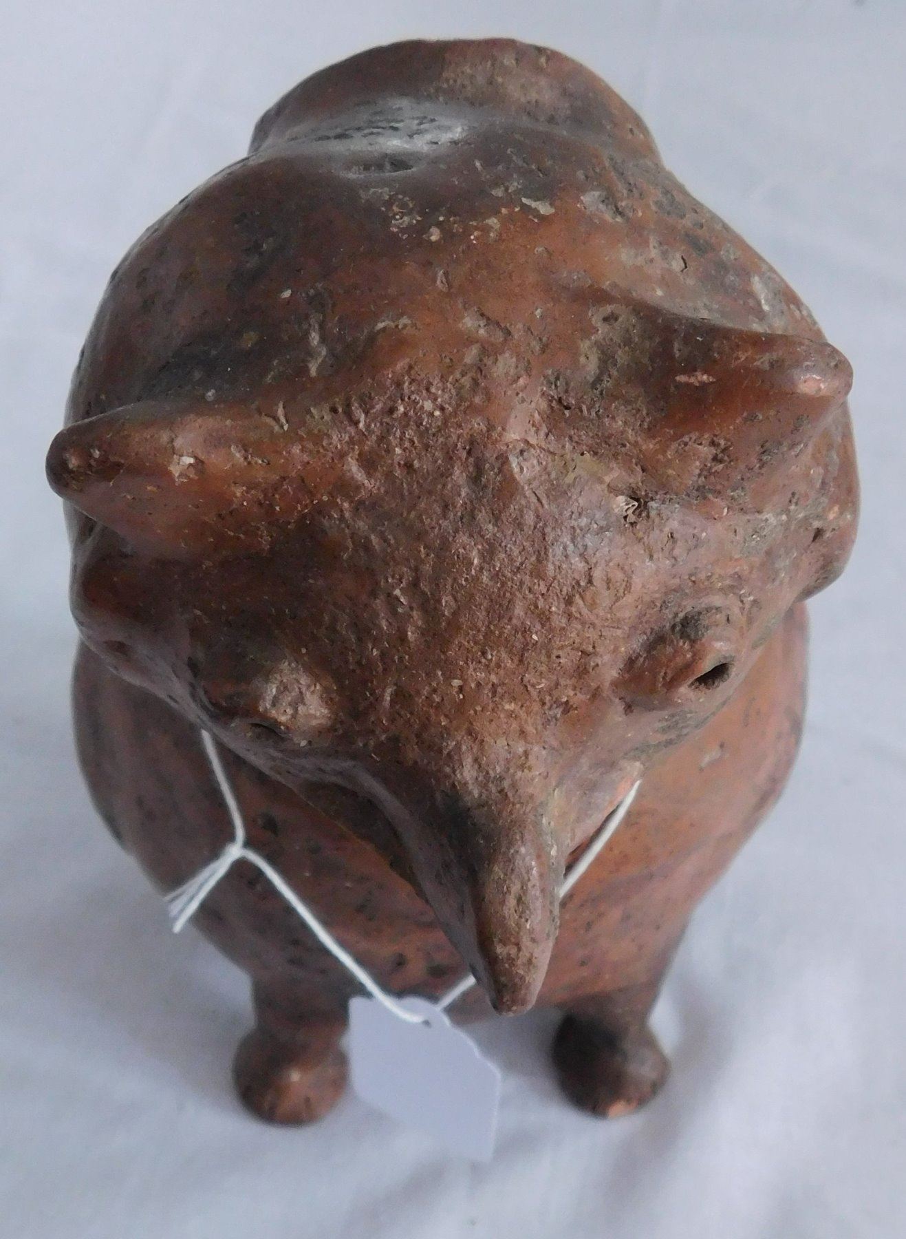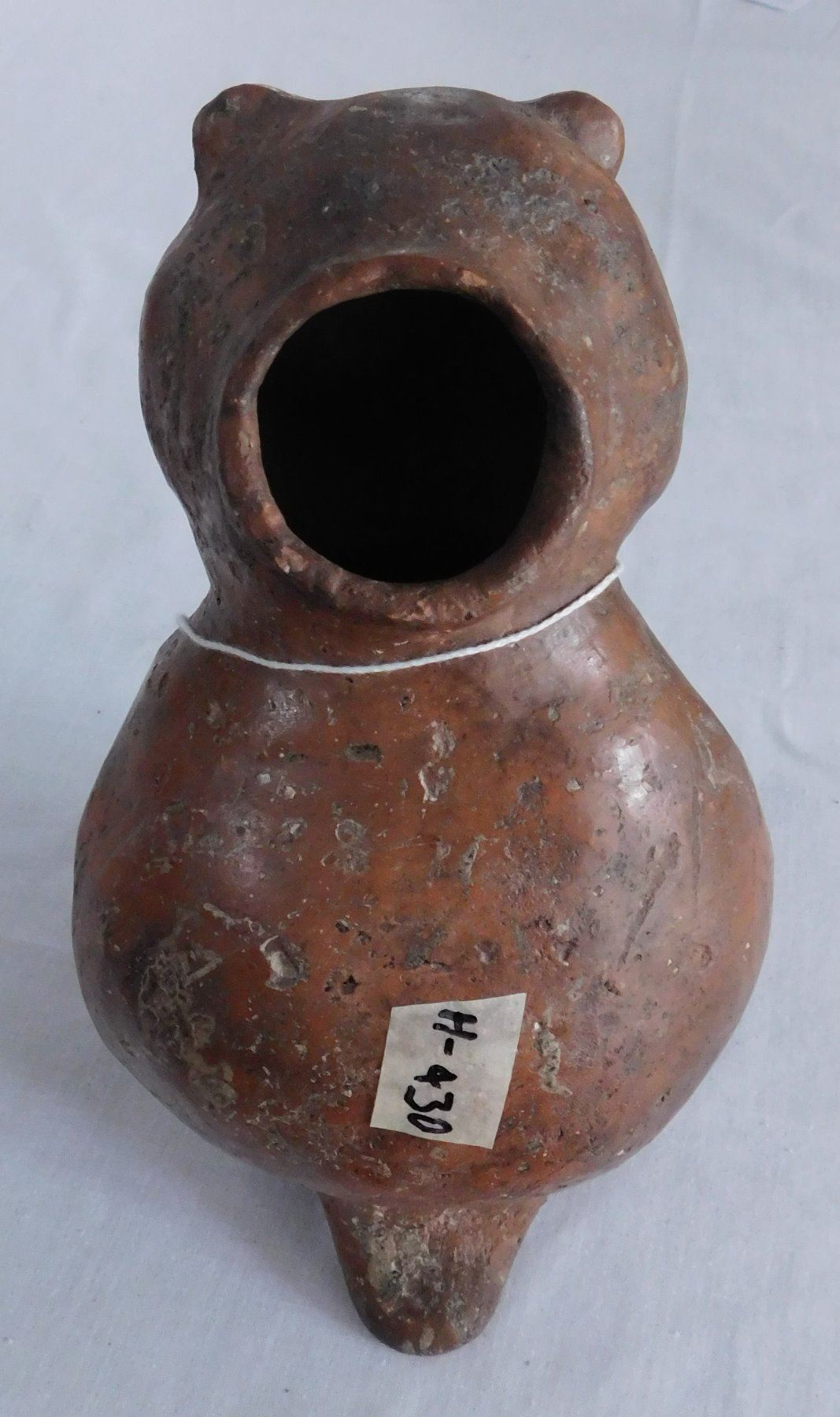 Caddo Owl, pre-historic item. Made of clay, the item measures 9" x 4.5". Eastern Texas. Condition: Good, minor chips, see images. Shipping: $34.50 w/insurance and signature, due to value.