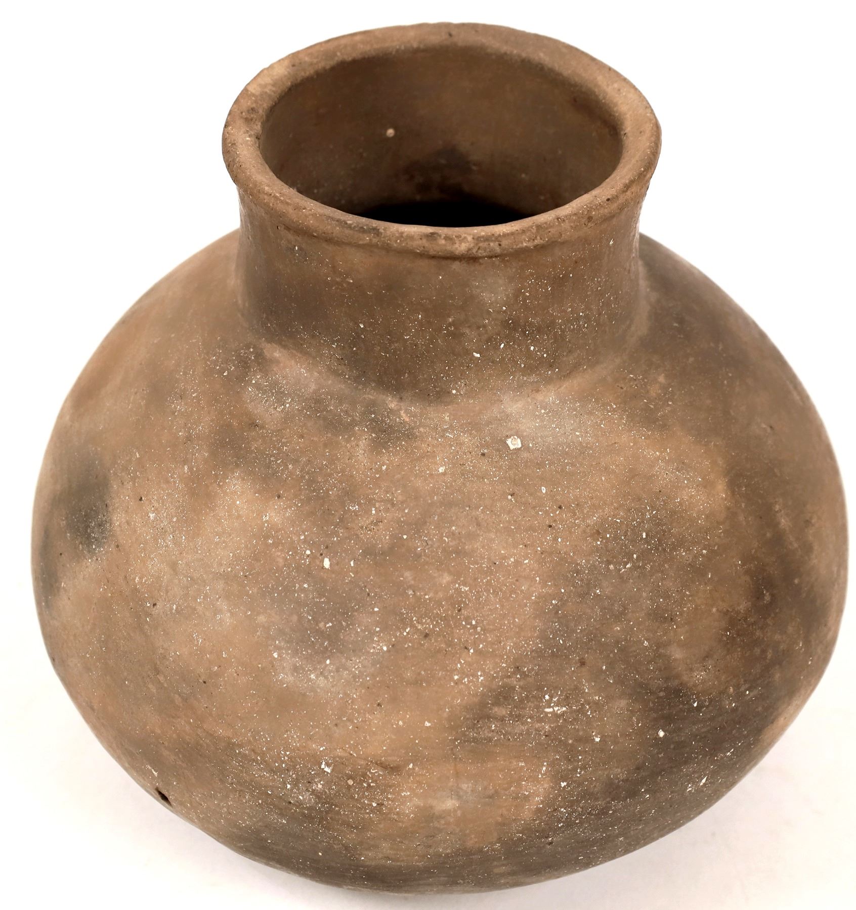 Prehistoric Caddo utilitarian storage jar 7"x 6.75". Chip on side, no apparent cracks. Good condition.