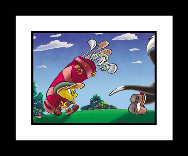 This limited edition giclee features Warner Bros. Looney Tunes characters, Tweety as a golf caddy titled "Caddy With A Tattitude." Size 16x20 framed, with Certificate of Authenticity. Edition Size: 500.“Giclée,†as a fine art term, has come to be associated with prints using fade-resistant "archival" inks (including solvent inks) and the inkjet printers that use them. These printers use the CMYK color process but may have multiple cartridges for variations of each color based on the CcMmYK color model .