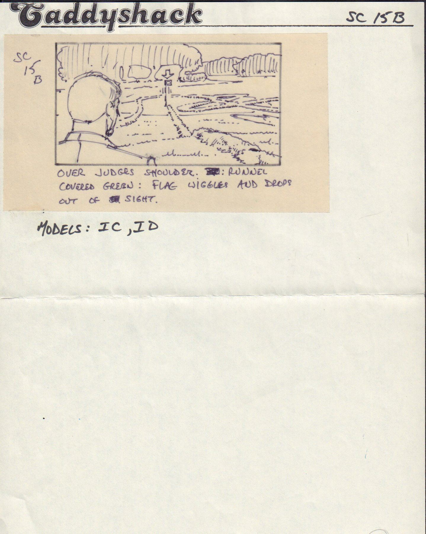 Original storyboard frame from the classic comedy film Caddyshack. This is a frame from the infamous golf course scene showing a judge watching a flag wiggle and drop into a hole. All items come with a certificate of authenticity good for the life of the piece.