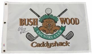 Caddyshack is one of the most beloved sports movies in American history. Nearly 35 years later, it's impossible to step onto a golf course without someone quoting the film. The film has garnered a large cult following and has been hailed by many publications, such as Time and ESPN, as one of the funniest sports movies of all time. CaddyShack actor Chevy Chase has personally hand-signed this CaddyShack Beaver Logo Bushwood County Club Golf Flag. PSA Hologram and Certificate of Authenticity.