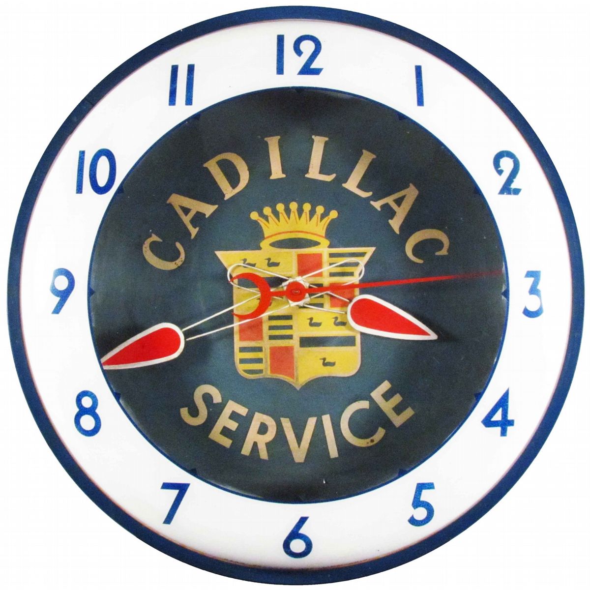 Cadillac Service Clock. Neon Products Inc. Lima, OH. Excellent working condition. 16 1/2 inch diameter X 5 inches deep.