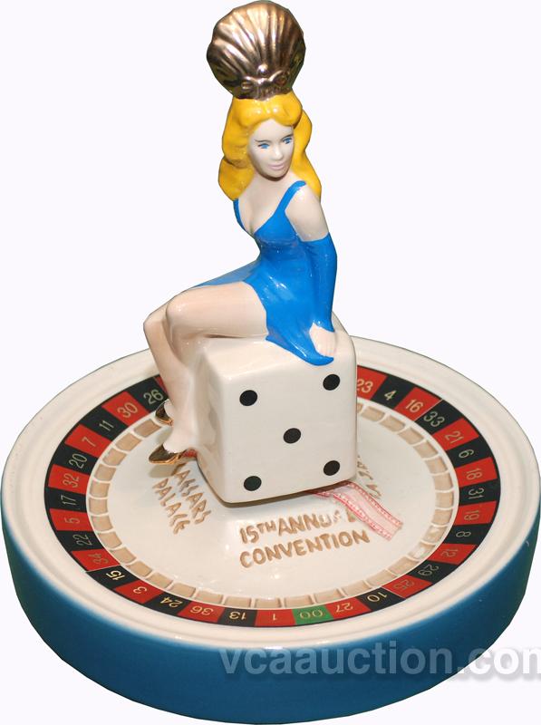 Caesars Palace Whiskey Decanter - Decanter depicts showgirl sitting on roulette wheel; among the most desirable of all casino decanters. Good condition; c1985.