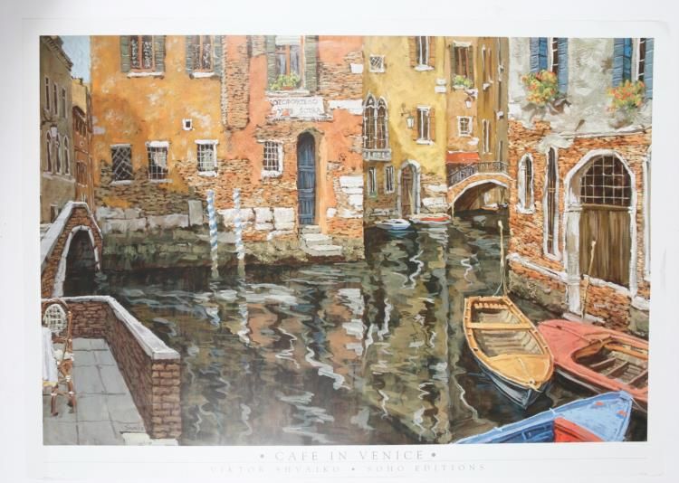 We have for sale Café in Venice by Viktor Shvaiko and produced by Soho Editions. This fine art poster print measures 27" x 38".