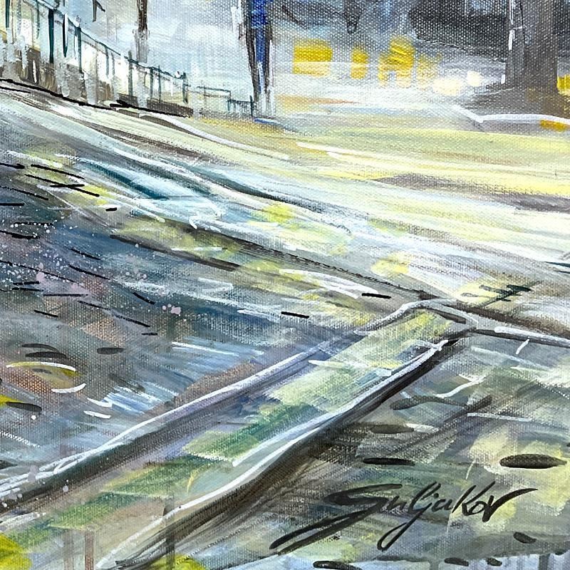 "Cafe Maumont" is an original oil painting on stretched canvas by Vadik Suljakov, hand signed by the artist. Includes Letter of Authenticity. Measures approx. 40" x 30" (image).
