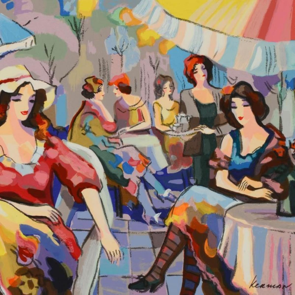 "Cafe" is a limited edition serigraph on paper by Michael Kerman. It is numbered and hand signed and includes a letter of authenticity. Measures approximately 12" x 14.5" (image).