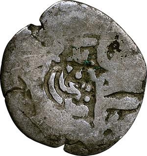 Oriente Latino. Caffa. Aspro tartaro con contromarca 'castello in cerchio' e 'khan'. Lunardi C72 var. Retowski 4 var. AG. g. 0.91 RRR. MB+.
