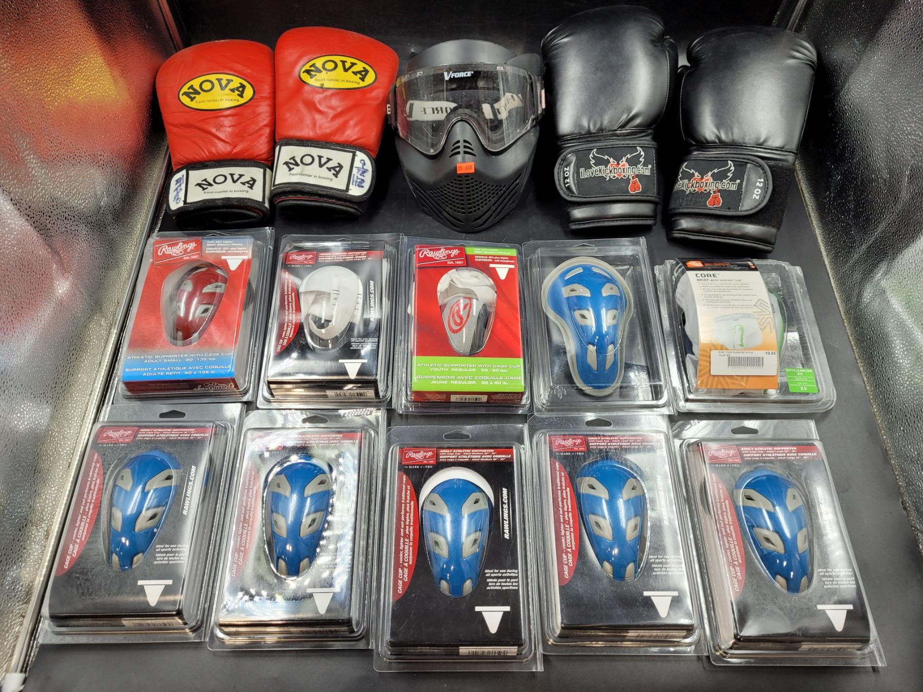 Cage Cups, Boxing Gloves, & Paintball Mask