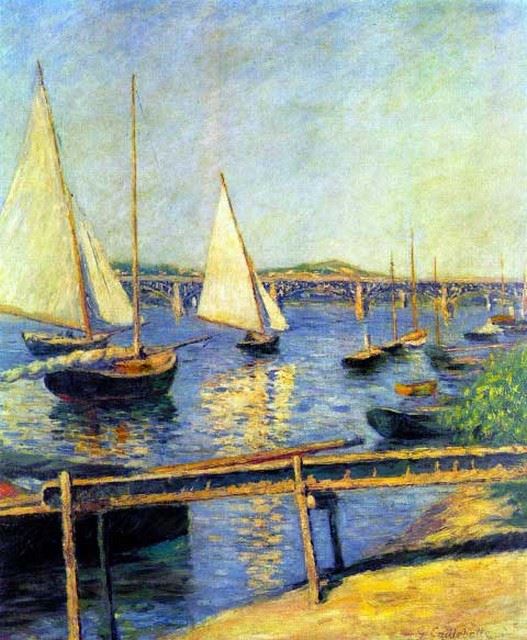 Artist: Gustave Caillebotte - Title: Sailboat at Argenteuil - Medium: Fine Art Reproduction Giclee on Canvas - Image Size: Approximately 20 inches x 16.5 inches - Unframed on Unstretched Canvas - Biography: Born into a wealthy family, Caillebotte trained to be an engineer but became interested in painting and studied at the ecole des Beaux-Arts in Paris. He met Pierre-Auguste Renoir and Claude Monet in 1874 and showed his works at the Impressionist exhibition of 1876 and its successors. Caillebotte became the chief organizer, promoter, and financial backer of the Impressionist exhibitions for the next six years, and he used his wealth to purchase works by other Impressionists, notably Monet, Renoir, Camille Pissarro, Paul Cezanne, Edgar Degas, Alfred Sisley, and Berthe Morisot.