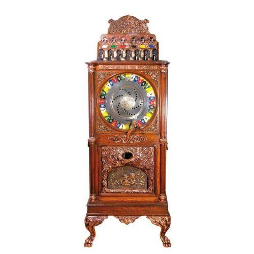Caille Big Six Upright Slot Machine Nickel Play. Professionally Restored approx. 30 years ago. This slot was in our spring, 2006 auction and is being offered once again by the new owner. It is the Slot pictured on the front of the Robert Geddes book Slot Machines on Parade. Excellent Playing Condition ready to take home and enjoy.