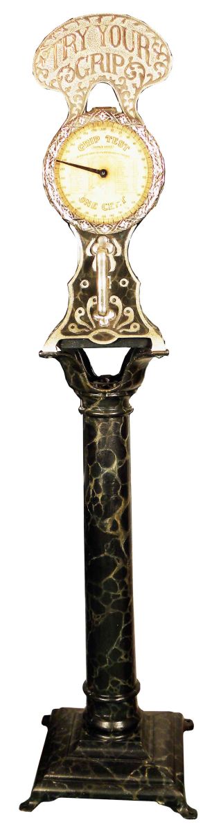 Caille Bros. One Cent Grip Tester. Coin-Operated. Good Working Condition. 12 X 65 X 10 inches.