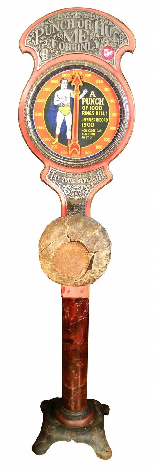 Caille Bros. Punch Me-Hug Me Machine. Nickel machine. All original, comes with key. 19 1/2 X 83 X 26 inches.