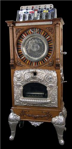 25 Cent Caille New Century Musical Puck Upright Slot Machine <BR>Due to laws regulating the sale of antique slot machines, I, as the seller, will not sell to from members in the states of Alabama, Connecticut, Hawaii, Indiana, Nebraska, South Carolina, and Tennessee. Bids from members residing in any of these states will be cancelled.