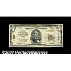 Cainesville, MO - $5 1929 Ty. 1 The First NB Ch. # 8407A tough note from the only bank here to issue. Nice Fine-Very Fine. <BR><BR><B>Important notice:</B> Heritage usually auctions material at the rate of 200-250 lots per hour. On some occasions eBay Live bid software or the Internet may not be able to keep up with the pace of the auction. We recommend placing a realistic absentee bid now as insurance to avoid disappointment. Occasionally the auctioneer may eliminate or reject an eBay Live bid, and the auctioneer may also reopen a lot after the close of the eBay live bidding (usually because we missed an audience bid), and may reject your bid even if it shows you as the winning bidder. By bidding via eBay Live, you agree that Heritage may award the lot to another bidder at its sole discretion under the circumstances described above or any other reasonable circumstances. Since eBay bids are not shown to us until we open the lot on the floor, we treat those bids just like floor bids. In most cases the floor responds before the eBay bid is presented to us, due to Internet lag time, so for consistency we have made it a policy that floor bids are always considered first over tie eBay live bids. Also please note that all Heritage lots purchased through eBay Live carry a 20% Buyer's Premium. Please make sure you read the Terms and Conditions before you bid. <BR><BR><B>IMPORTANT ANNOUNCEMENT ABOUT RESERVES:</B> Heritage now divulges all reserves on its web site 7 days before every auction. If you want to know whether the reserve on this lot has been met, and if not, what the reserve amount is, please visit this lot page on the HeritageCoin.com web site, or email: bid@HeritageGalleries.com