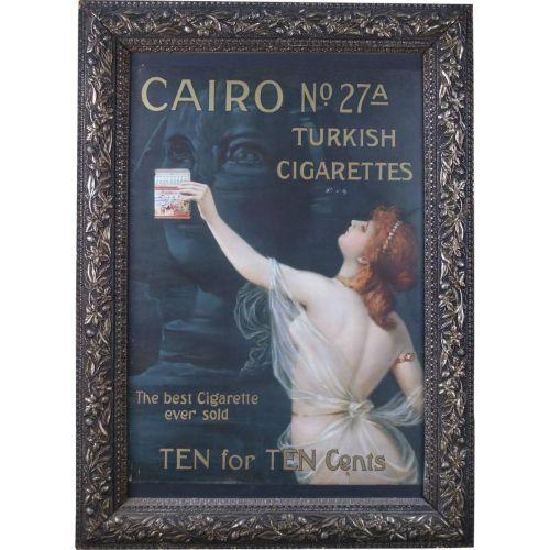 Cairo Turkish Cigarettes Paper Sign Framed 26 x 36