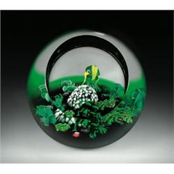 Caithness Glass "Island Dream" spherical paperweight, with a nature study of assorted deep green...