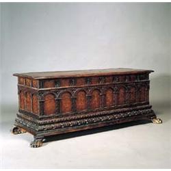 "Caixa de nuvia" en nogal. Trabajo catalán, S. XIX. Medidas: 59 x 53 x 136 cms.
