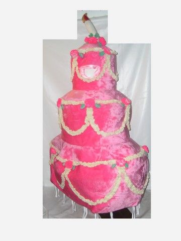 What better to bring to a party than cake? With the help of New York Cake costume designer Frankie Stein, you can do just that with this custom made cake costume. It represents a three tiered pink cake, with white "frosting" to serve as decoration. There is a hat included which is made to look like a candle. Ms. Stein's work has been featured on stage, television, film & print, and she successfully owns and operates "Frankie Steinz" costume shop in New York. As a freelance costume designer, she later moved her business to New York City where her many clients include ABC, Sony, Disney and HBO, and celebrities Robert De Niro, Billy Joel and Dolly Parton, to name a few. Her work has been featured in The New York Times, Time Out magazine and People Online, and has been seen on The David Letterman Show, The View, Saturday Night Live, The Rosie O'Donnell Show, and Everybody Loves Raymond, and she is credited on the major Academy Award winning film 'Eternal Sunshine of the Spotless Mind.'