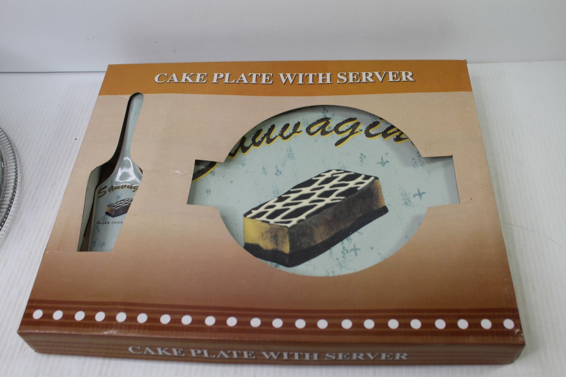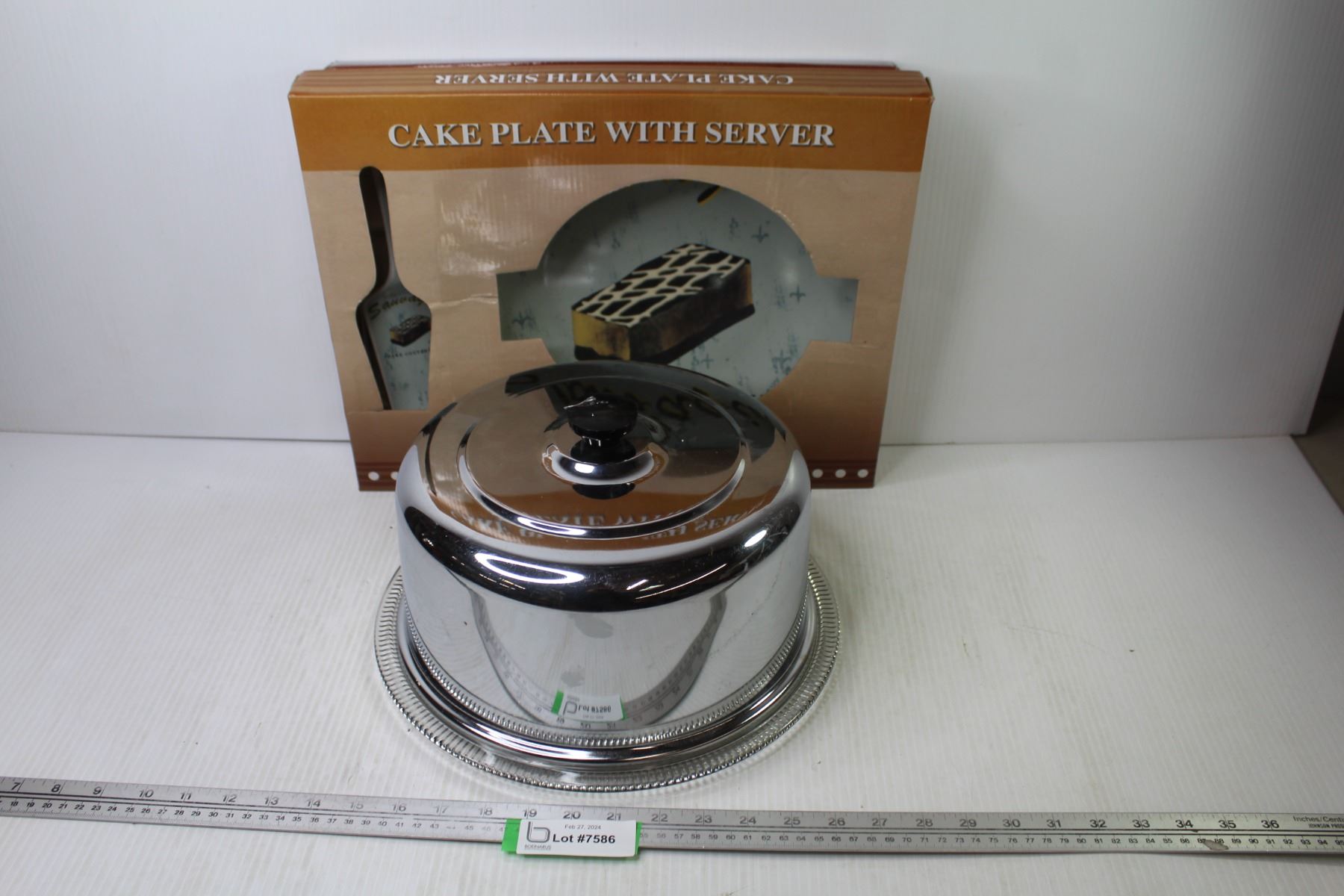 Cake Plate w/Metal Top - Ceramic Cake Plate w/Server in Box