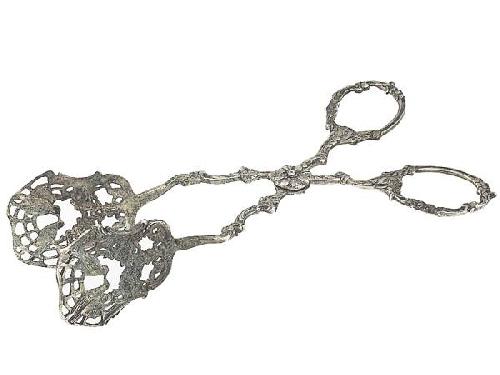 Silver, 52 g. Cast scissors with pierced decoration at the ends: a pair of doves and flowers. Marked: German, late 19th century. Length: 17 cm