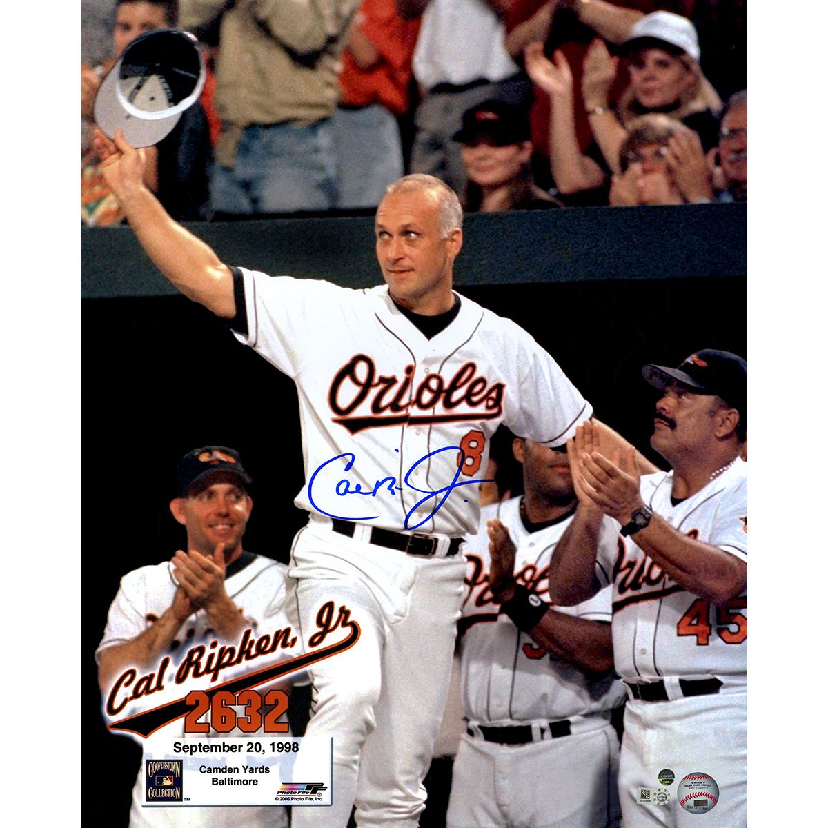 Cal Ripken Jr. Signed '2632' Vertical 16x20 Photo w/ Text Overlay (Signed in Blue) (MLB Auth)