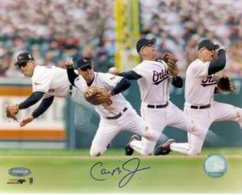 Cal Ripken, Jr. is one of only seven players in history to reach the 400 home runs and 3,000 hit plateaus, joining Hank Aaron, Willie Mays, Eddie Murray, Stan Musial, Dave Winfield & Carl Yastrzemski. He retired having played in 3001 games (8th all-time), 3,184 hits (13th all-time), 431 career homers (30th all-time) and held or shared 11 Major League or American League fielding records. Ripken was inducted into the National Baseball Hall of Fame in Cooperstown, NY in 2007. Cal Ripken, Jr. has hand signed this Baltimore Orioles 4 Exposure 8x10 Photo. Certificate of Authenticity from Athlon Sports Collectibles.