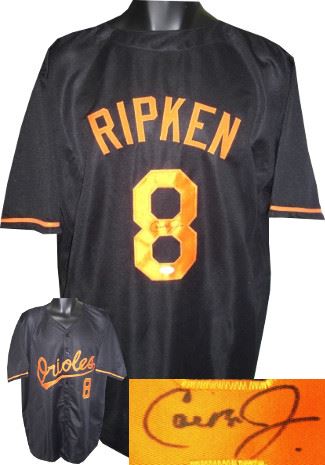 Cal Ripken Jr. has become more than just a great baseball player he is now a baseball legend. Ripken compiled 3184 hits 431 home runs and broke Lou Gehrig's career record for most consecutive games played in MLB history. The Baltimore Orioles' 'Ironman' ended his amazing streak at 2632 taking himself out of a game against the New York Yankees. He was a unanimous choice for the National Baseball Hall of Fame in 2007 his first year of eligibility. This is a Cal Ripken, Jr. Baltimore Orioles signed White unlicensed custom-prostyle jersey with twill stitched nameplate and numbers. JSA Hologram and Certificate of Authenticity from Athlon Sports.