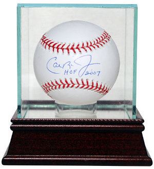 This is a official Rawlings signed by Baseball Hall of Famer, Cal Ripken Jr. with HOF 2007 inscription! With values instilled in him from a deep rooted baseball family, Cal Ripken, Jr. played 21 seasons for the Orioles. A two-time American League Most Valuable Player, he revolutionized the shortstop position and proved to be the most durable everyday player in baseball history. He retired having played in 3001 games (8th all-time), 3,184 hits (13th all-time), 431 career homers (30th all-time) and held or shared 11 Major League or American League fielding records. Ripken was voted into the National Baseball Hall of Fame on his first ballot on January, 9, 2007. Ironclad Hologram and Certificate of Authenticity. Glass Display Case shown IS included