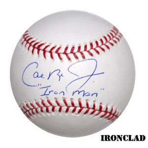 This is a official Rawlings signed by Baseball Hall of Famer, Cal Ripken Jr. with IRONMAN inscription! With values instilled in him from a deep rooted baseball family, Cal Ripken, Jr. played 21 seasons for the Orioles. A two-time American League Most Valuable Player, he revolutionized the shortstop position and proved to be the most durable everyday player in baseball history. He retired having played in 3001 games (8th all-time), 3,184 hits (13th all-time), 431 career homers (30th all-time) and held or shared 11 Major League or American League fielding records. Ripken was voted into the National Baseball Hall of Fame on his first ballot on January, 9, 2007. Ironclad Hologram and Certificate of Authenticity.