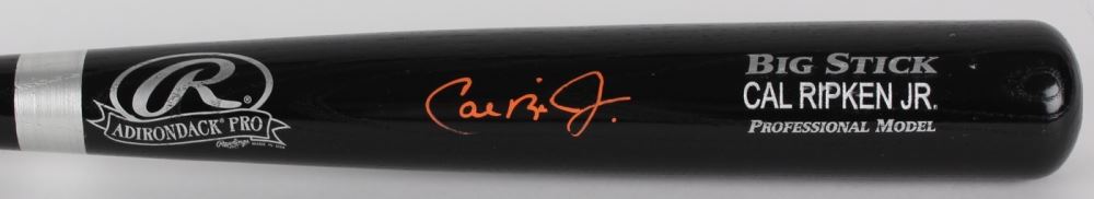 Rawlings Adirondack Big Stick Professional Player Model Big Stick baseball bat. Hand-signed in orange paint pen by Cal Ripken Jr. (Orioles, HOF).
