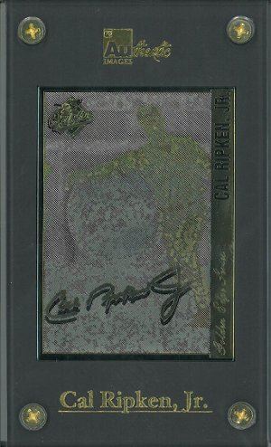 Cal Ripken, Jr. played his entire career (1981–2001) for the Baltimore Orioles. He is perhaps best known for breaking New York Yankees first baseman Lou Gehrig's record for consecutive games played, a record many deemed unbreakable. A 19-time All-Star and member of the 3000 hit club, Ripken is considered one of the best shortstops and third basemen to ever play the game. When inducted into the National Baseball Hall of Fame in 2007, he was a first ballot inductee with the third highest voting percentage (98.53%) in Hall of Fame history. This is a Cal Ripken, Jr unsigned Baltimore Orioles Career- 24 Karat Gold Signature Card. Limited Edition of 1008. Slabbed to overall size of 3.5" x 5.5"