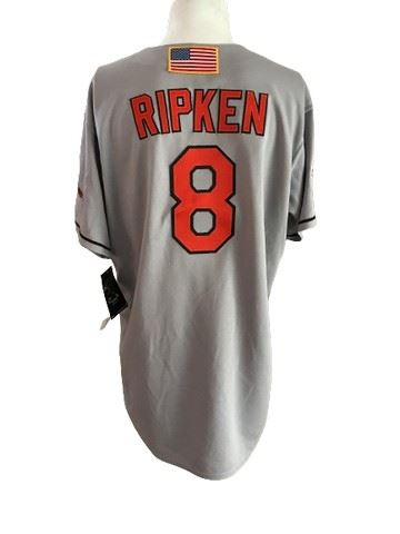 Cal Ripken Orioles Authentic Majestic Athletic baseball jersey #8. This is the American League, 100th Anniversary jersey with a 100th season patch on the sleeve. Autographed on the front. Original tags attached. Glued on American flag on the back. Size 48. Includes PSA/DNA Letter of Authenticity. Calvin Edwin Ripken Jr. (born August 24, 1960), nicknamed "the Iron Man", is an American former baseball shortstop and third baseman who played his entire 21-season career in Major League Baseball (MLB) for the Baltimore Orioles (1981–2001). One of his position's most productive offensive players, Ripken compiled 3,184 hits, 431 home runs, and 1,695 runs batted in during his career, and he won two Gold Glove Awards for his defense. He was a 19-time All-Star and was twice named American League (AL) Most Valuable Player (MVP). Ripken holds the record for consecutive games played (2,632), having surpassed Lou Gehrig's streak of 2,130 that had stood for 56 years and that many deemed unbreakable. In 2007, he was elected to the National Baseball Hall of Fame in his first year of eligibility with 98.53% of votes, the sixth-highest election percentage ever.