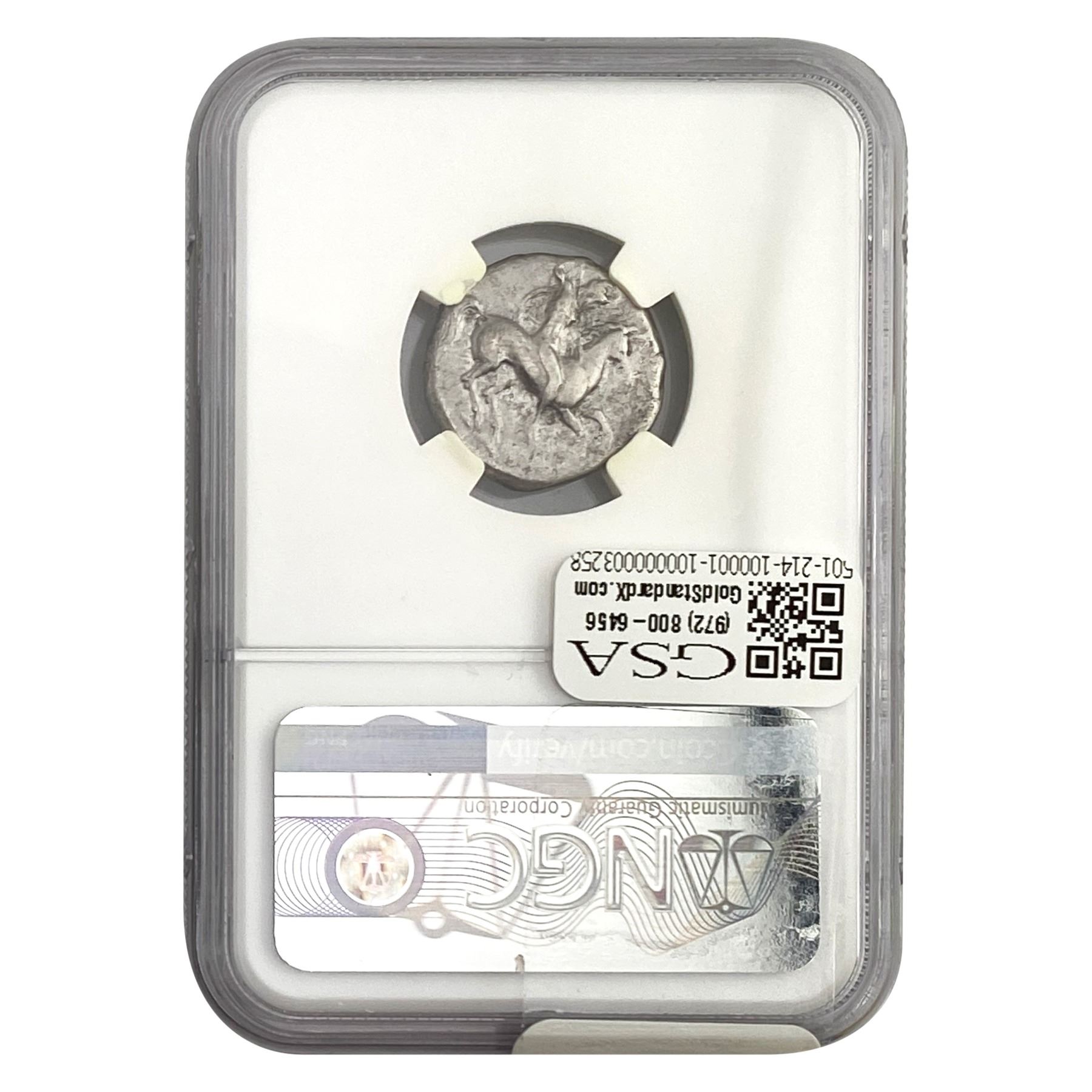e. Coins sold referencing a third-party grading service are sold “AS IS” without any express or implied warranty, except for a guarantee by GSA that they are genuine. Removal or alteration of the holder, voids all of Bidder’s claims concerning that Product. Certain warranties may be available from the grading services and Bidders are referred to them for further details: Numismatic Guaranty Corporation (NGC), PO Box 4776, Sarasota, FL 34230, www.ngccoin.com/services/writtenguarantee.asp; Professional Coin Grading Services (PCGS), PO Box 9458, Newport Beach, CA 92658, www.pcgs.com/guarantee.html; ANACS, 6555 S. Kenton St., Ste. 303, Englewood, CO 80111; and Independent Coin Grading Co. (ICG), 7901 East Bellview, Ave., Suite 50, Englewood, CO 80111.