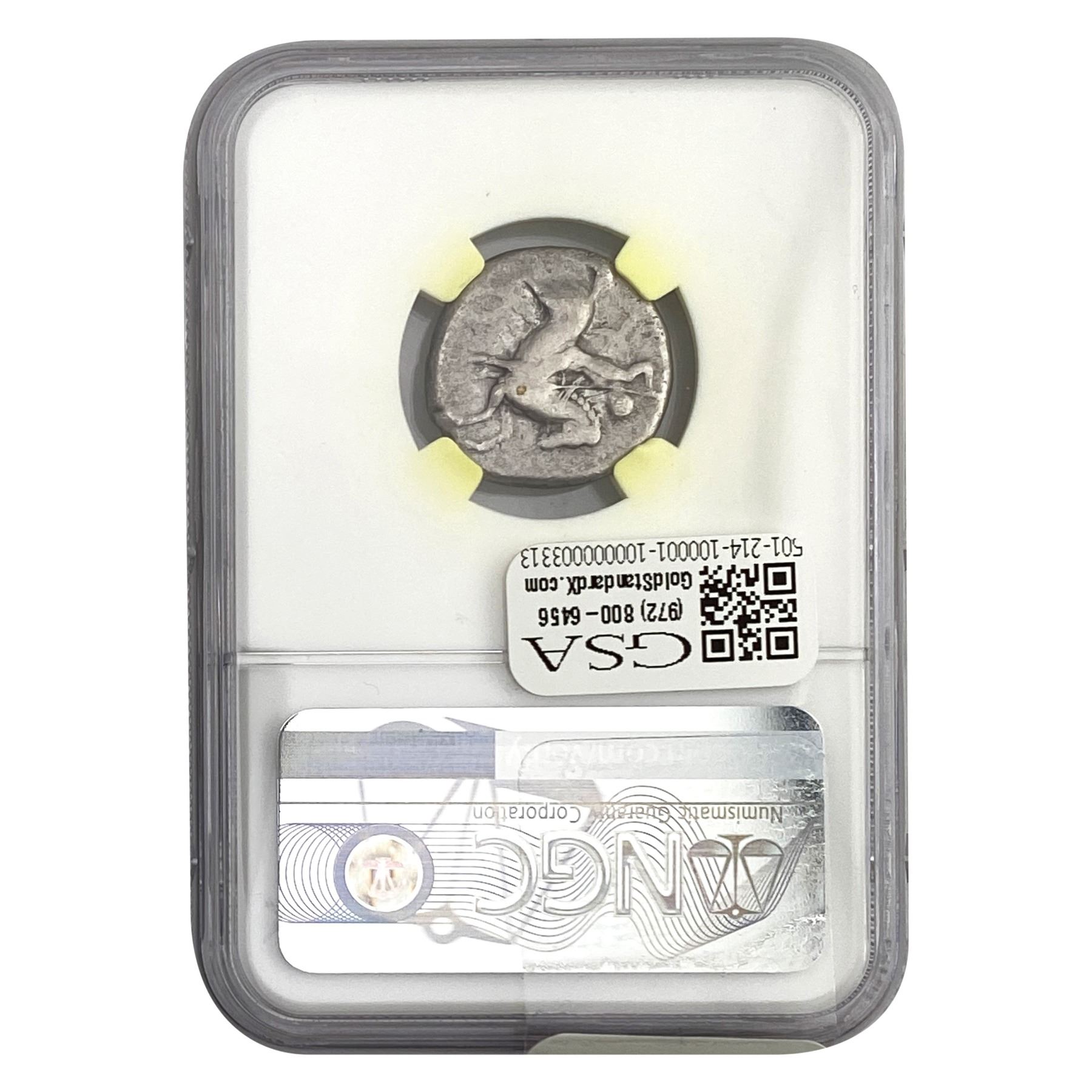 e. Coins sold referencing a third-party grading service are sold “AS IS” without any express or implied warranty, except for a guarantee by GSA that they are genuine. Removal or alteration of the holder, voids all of Bidder’s claims concerning that Product. Certain warranties may be available from the grading services and Bidders are referred to them for further details: Numismatic Guaranty Corporation (NGC), PO Box 4776, Sarasota, FL 34230, www.ngccoin.com/services/writtenguarantee.asp; Professional Coin Grading Services (PCGS), PO Box 9458, Newport Beach, CA 92658, www.pcgs.com/guarantee.html; ANACS, 6555 S. Kenton St., Ste. 303, Englewood, CO 80111; and Independent Coin Grading Co. (ICG), 7901 East Bellview, Ave., Suite 50, Englewood, CO 80111.