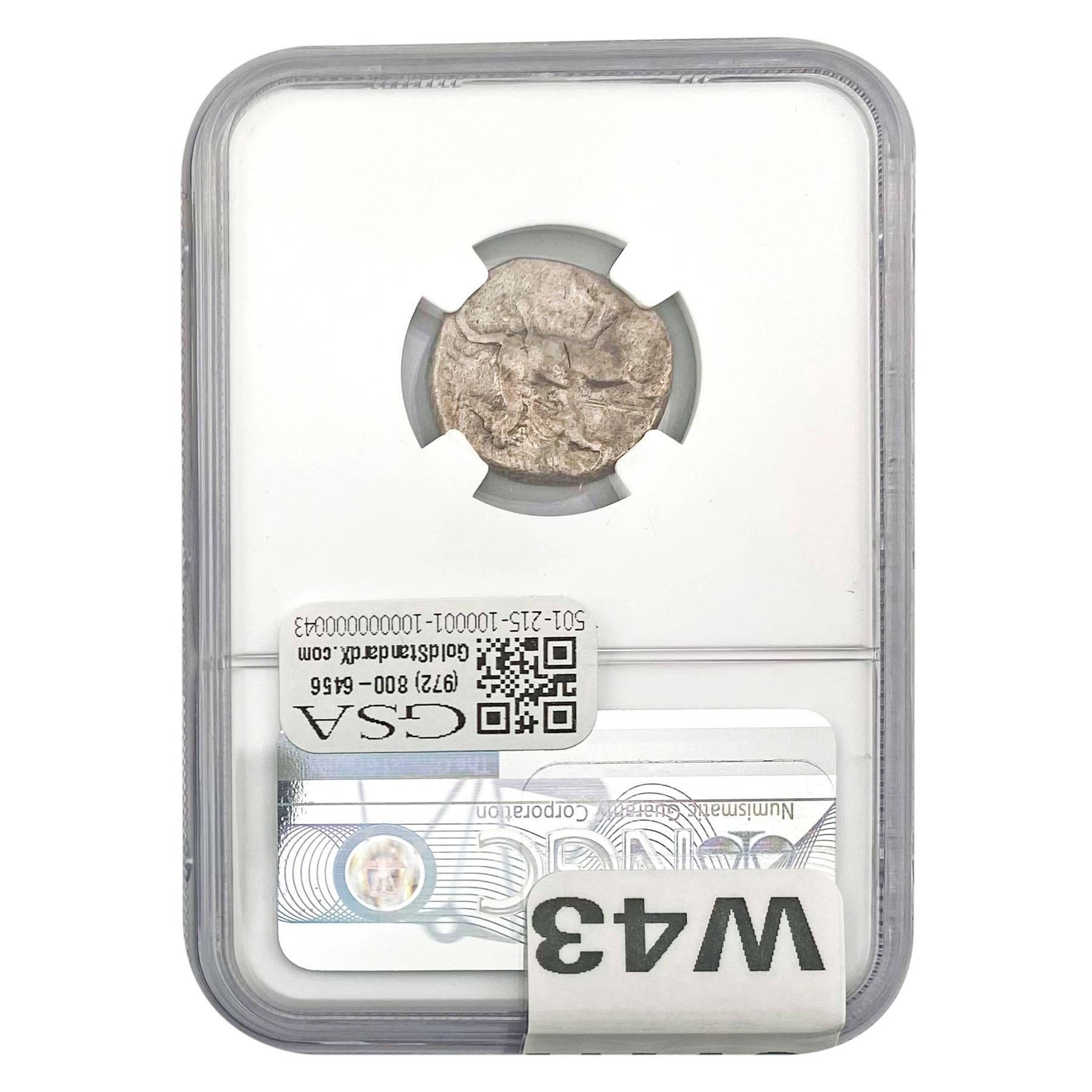 e. Coins sold referencing a third-party grading service are sold “AS IS” without any express or implied warranty, except for a guarantee by GSA that they are genuine. Removal or alteration of the holder, voids all of Bidder’s claims concerning that Product. Certain warranties may be available from the grading services and Bidders are referred to them for further details: Numismatic Guaranty Corporation (NGC), PO Box 4776, Sarasota, FL 34230, www.ngccoin.com/services/writtenguarantee.asp; Professional Coin Grading Services (PCGS), PO Box 9458, Newport Beach, CA 92658, www.pcgs.com/guarantee.html; ANACS, 6555 S. Kenton St., Ste. 303, Englewood, CO 80111; and Independent Coin Grading Co. (ICG), 7901 East Bellview, Ave., Suite 50, Englewood, CO 80111.