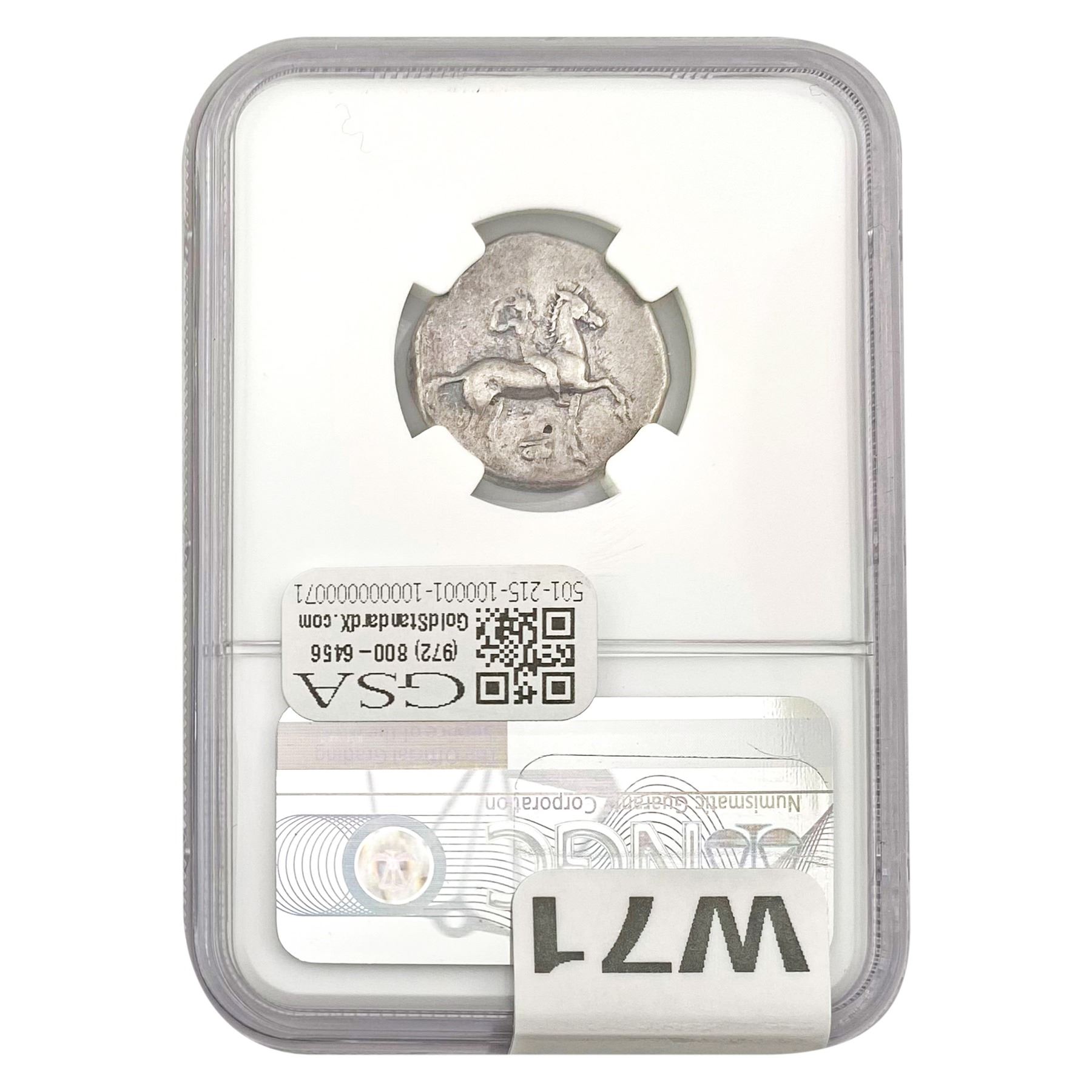 COINS AND CURRENCY LISTED IN GSA’S CATALOG AS GRADED AND ENCAPSULATED BY PCGS, NGC, ANACS, ICG, PCGS CURRENCY, PMG, PCGS BANKNOTE GRADING, CMC OR ANY OTHER THIRD-PARTY GRADING SERVICE ARE LIKEWISE SOLD “AS-IS” EXCEPT AS EXPRESSLY SET FORTH HEREIN. ALL THIRD-PARTY GRADING SERVICE GUARANTEES, INCLUDING AUTHENTICITY, ARE THE SOLE RESPONSIBILITY OF THE THIRD-PARTY GRADING SERVICE AND NOT WARRANTIES OR GUARANTEES OF GSA. BIDDERS SHOULD CONTACT THESE THIRD-PARTY GRADING SERVICES DIRECTLY WITH RESPECT TO ANY CLAIMS OR QUESTIONS THEY MAY HAVE CONCERNING THEIR GUARANTEES AND WARRANTIES. BIDDERS ACKNOWLEDGE AND AGREE THAT AUCTIONEER IS NOT BOUND BY OR LIABLE FOR ANY OPINION OR CERTIFICATION BY ANY THIRD-PARTY GRADING SERVICE. REMOVAL OF A PRODUCT FROM ITS PROTECTIVE CASING OR HOLDER OR ALTERATION OF ANY COIN HOLDER WAIVES ALL RIGHTS CONCERNING THE PRODUCT CONTAINED THEREIN.