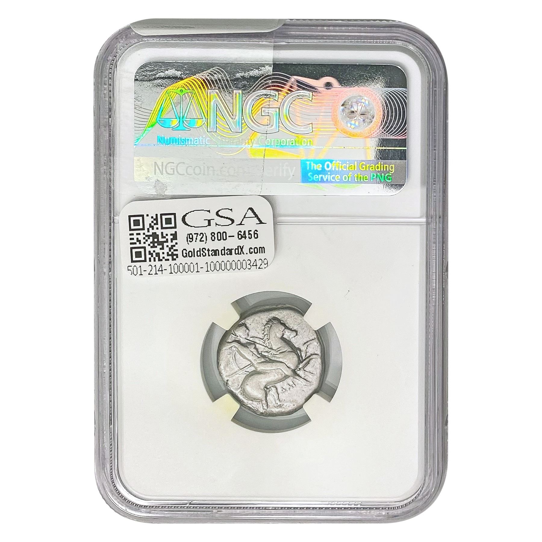 e. Coins sold referencing a third-party grading service are sold “AS IS” without any express or implied warranty, except for a guarantee by GSA that they are genuine. Removal or alteration of the holder, voids all of Bidder’s claims concerning that Product. Certain warranties may be available from the grading services and Bidders are referred to them for further details: Numismatic Guaranty Corporation (NGC), PO Box 4776, Sarasota, FL 34230, www.ngccoin.com/services/writtenguarantee.asp; Professional Coin Grading Services (PCGS), PO Box 9458, Newport Beach, CA 92658, www.pcgs.com/guarantee.html; ANACS, 6555 S. Kenton St., Ste. 303, Englewood, CO 80111; and Independent Coin Grading Co. (ICG), 7901 East Bellview, Ave., Suite 50, Englewood, CO 80111.