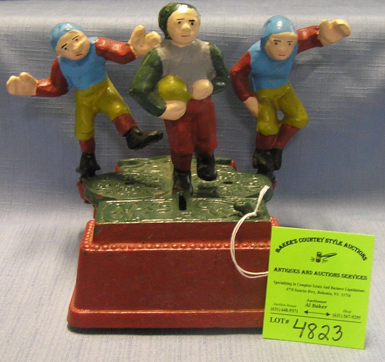 Vintage hand painted cast iron Calamity Football Bank circa 1970’s $350.00-$375.00